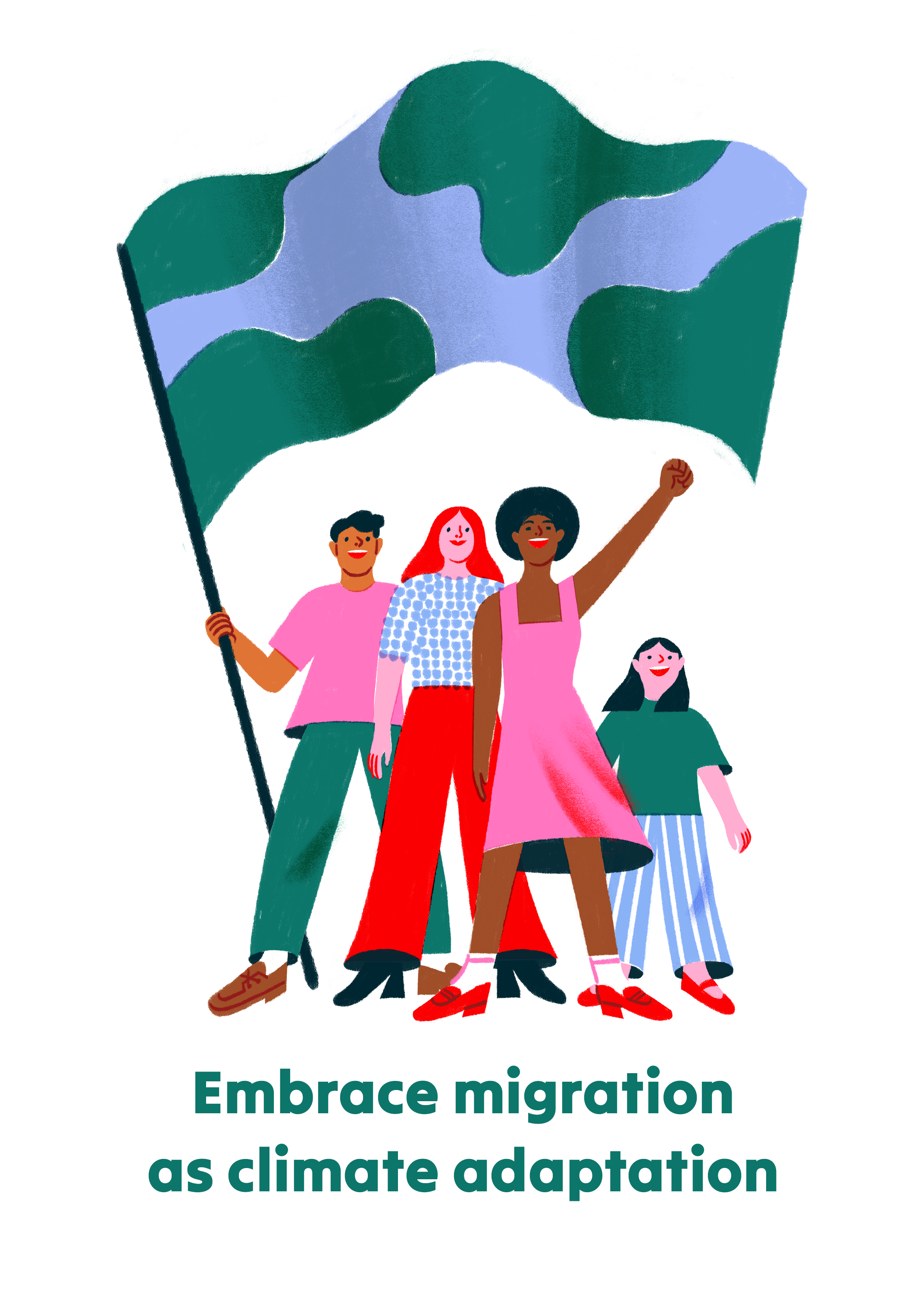 We commissioned 20 outstanding global artists with migration experience to produce illustrations that envision a just and vibrant society where migration is embraced as an adaptation to climate change; where we can all flourish, uphold human dignity, value diversity, and honor our common humanity.